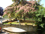 Une terrasse couverte avec barbecüe, salon de jardin, 2 vélos à disposition, ainsi qu'une barque, 2 relax.